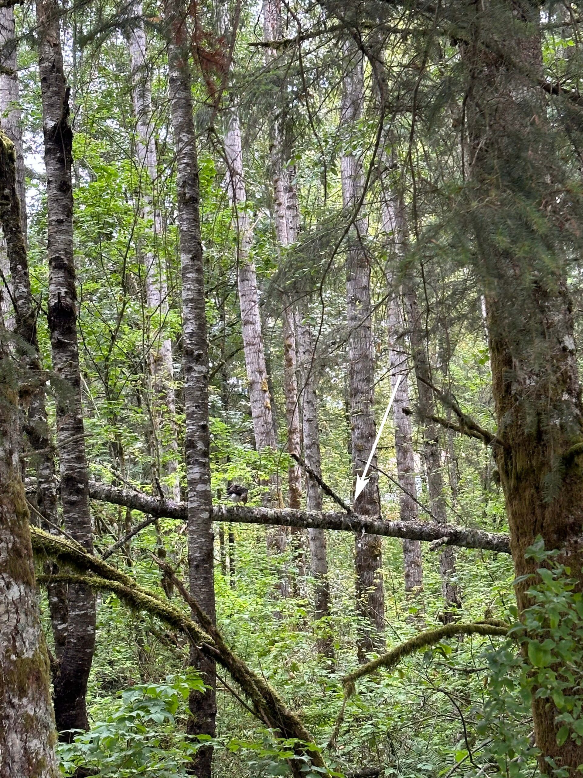 Without the Plucking Post, there would be no observations. On or about 15 March of this year a dead Douglas Fir fell over the Collin Creek Trail. In a day or two the overhanging trunk was removed from the trail. But the remaining trunk, on the north side of the trail and adjacent to it, remained. The trunk was about 7 inches in diameter and about 9 feet from the ground. The close proximity to the trail proved critical to our later observations and photographs. The structure became the “Plucking Post.”
